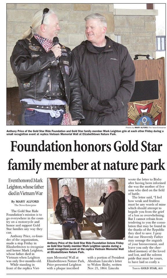 We've now finished 62 rides for Gold Star Families in these United States. During those trips, we've made incredible friendships of people who wanted to help and people we honored along the way, including more than 530 Gold Star Family members. The following pictures are provided as photographic evidence of where we've been and what we do. More pictures and stories are available in our book, Yours, Very Sincerely and Respectfully,